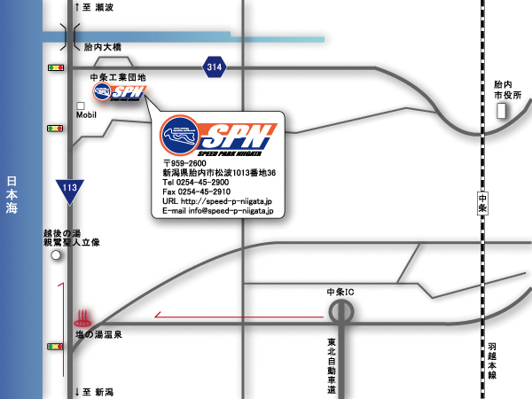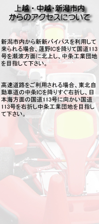日本海東北自動車道、中条I.Cまで10Km(道路新設後6Km)。中条I.Cから特定重要港湾・新潟東港コンテナターミナルまで約22Km。 同港からは、韓国、中国、東南アジアへのコンテナ航路及びロシアへの国際定期航路があります。中条I.Cから新潟空港I.Cまで約28Km。 同港からは、ロシア、中国、香港、グアムへの国際定期航路、国内は札幌、佐渡、名古屋、大阪、神戸、福岡、沖縄への定期航路があります。